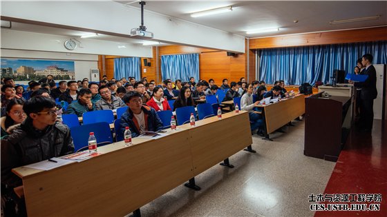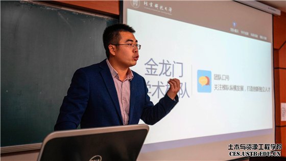矿业系统工程科研团队首先登场答辩,两位答辩人伴随着悠扬的背景音乐将团队的学术历程、科研成果及生活风采娓娓道来,现场还播放了同学们为远赴加拿大访学的李国清老师制作的视频,现场观众深受感动。Group Wu科研团队展现了团队精细高效的管理制度、丰硕的科研成果和多彩的课余活动,精心制作的宣传折页受到了评委的一致认可。欧盛南老师作为金龙门科研团队的代表,为大家展示了团队的学术科研成果和内部建设成果,语言风趣,解析透彻,引来现场阵阵掌声。