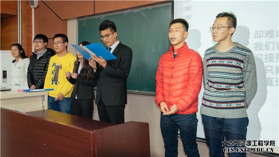土博15班在答辩过程中从容自信,通过班里几位有代表性同学的亲身讲述,使大家深切感受到他们积极的学术氛围和强大的凝聚力。“矿世英雄,加冠四方”是矿加硕1501班的响亮口号。富有激情的演讲向我们展示了一个在学习科研中奋勇争先、在班级建设中独树一帜的班集体。采矿硕1503班通过几个同学在班集体中逐渐成熟进步的例子,向现场评委和观众展示了严格的班级制度和勇于实践的科研作风。