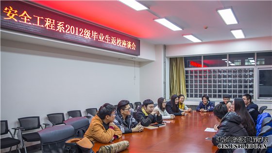 11月19日下午,土木与资源工程学院安全工程专业2016届毕业生返校座谈活动在土环楼214会议室成功举办。安全工程系副主任、时任安全工程专业2012级班主任刘建,时任本科2012级辅导员高爽出席座谈会。会议由2016届毕业生、学院本科2016级辅导员牛小萌主持。
