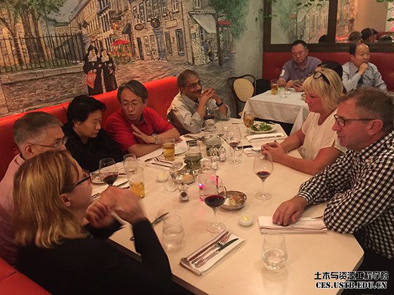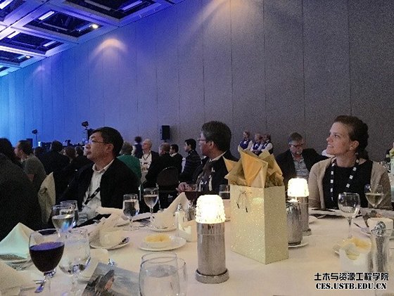 上:与国内外高校、企业与会代表交流;下:参加大会闭幕式晚宴