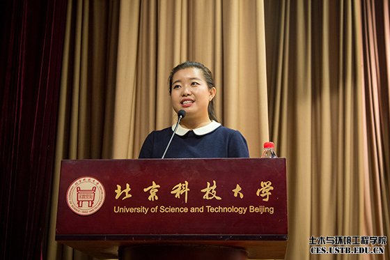 伴随着神圣庄严的国歌,典礼正式开始,253名硕士研究生和64名博士研究生将以“贝壳人”的身份开始新的起点,踏上人生另一段新的征程。首先2015级土木工程专业博士生陈璐代表老生发言,她对新生的到来表示了热烈的祝贺与欢迎,并用诙谐幽默的语言给予了新生们祝福与寄望。