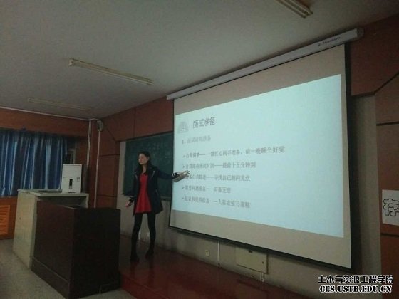 如何在面试前充分准备,如何在面试中脱颖而出,如何拿下自己心仪的工作,是所有面试者必须面对的难关。胡导结合图片与案例,生动形象的为同学们讲解到底我们该怎样去面试;面试前要如何了解招聘单位;如何了解自己将要面试的职位;面试时男女生的衣着有什么讲究以及面试时有哪些必备礼仪等问题。同时还向同学们介绍了面对不同形式的面试的技巧。