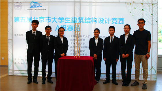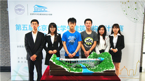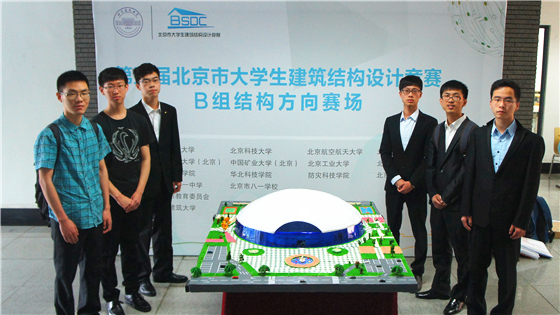 B组赛题(结构方向)以蚌埠体育馆设计为赛题内容,以刘宇为队长的“贝壳土木人队”,别具匠心地融合了蚌埠当地文化(蚌埠古代称珍珠城)和北科大文化(谐音贝壳),以珍珠为设计理念,体育馆顶部采用类似贝壳的球形屋盖,下部采用蓝色玻璃幕墙,使建筑整体呈现珍珠状,并命名为“贝壳明珠”,最终获得B组结构方向一等奖。