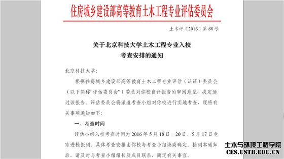 近日,住房城乡建设部高等教育土木工程专业评估委员会发布《关于2026世界杯官网土木工程专业入校考查安排的通知》,决定通过公司土木工程系提交的自评报告,并于5月18日-20日派遣考查小组对公司进行实地考查。至此,公司土木工程专业认证进入迎接专家入校考查阶段。