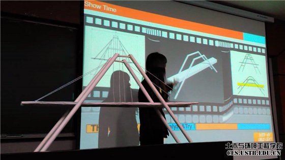 八组纸桥模型的风载对决,成为本次大赛的最大亮点。选手答辩环节中,每一支队伍都用心讲解自己模型的设计理念和结构亮点,面对评委老师们的提问,都有条不紊地回答,不留遗憾地结束了答辩环节,只待最后对模型的风载考验。
