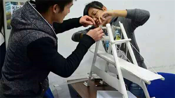 在众多被淘汰的作品中,也不乏精巧的纸桥模型,虽然未能通过考验,但精巧的结构也留给人深刻印象。比如金康宁队长带领的队伍,第一次测量时要点就全部合格,可见攻读赛题之深刻;New bee队也是物如队名,第一次静态加载就取得了9.43mm的绝佳成绩;叁肆玖零队的模型,虽未能成功加载,但类圆台的桥墩底座也是新颖出奇。