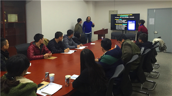 Richard Goldfarb教授的报告以“中国是否存在卡林型金矿”为题,对卡林型金矿的研究进展、卡林型金矿研究中存在的主要问题、中国卡林型金矿研究现状等进行了详细的介绍。矿物学、岩石学、矿床学专业,地质资源与地质工程专业、采矿工程专业的部分硕士和博士研究生参与学术交流,土木与环境工程学院钟日晨博士提供现场翻译。