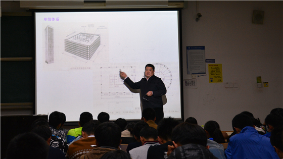 李长洪以土木工程与建筑学的区别为切入点,深入浅出,与员工充分互动,就土木工程专业发展方向及超高层建筑、地下空间发展做了细致讲解。随后他还从一个师长和学院主管本科生教学领导的角度,为大家重点介绍了大学学习与高中学习不同,勉励大家要创新学习方法,养成独立自主、深入研究的学习习惯,尽快适应大学的学习生活,为今后的职业发展与规划打好基础。