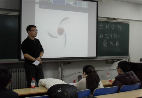 此次交流会邀请了土木工程硕09的闫树新和环境工程硕09的曹倩青两位同学作为嘉宾,学院研究生工作组组长张毅老师也同时出席。其中曹倩青已签约首都航天机械公司,闫树新已签约北京中海地产有限公司。