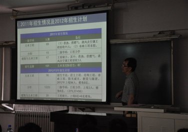 2012年5月29日下午,土木与环境工程学院本092党支部在土环楼201室为土木工程2009级员工举办了一个就业与考研的信息说明会。本次说明会由土本092党支部主办,并得到了土木专业老师、08级学长和09级同学们们的大力支持。