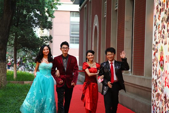 晚6点晚会开始前,灯火通明的教职工礼堂,相机闪光灯咔嚓咔嚓,欢呼声鼓掌声不绝于耳……身着小礼服、脚踩高跟鞋的土环学院毕业生载着对未来的期待和对校园的不舍,手挽手并肩走上红地毯,吸引了不少在校师生的眼球,让大家领略到毕业生的别样魅力,无疑成为今年毕业晚会上一道最亮丽的风景线。