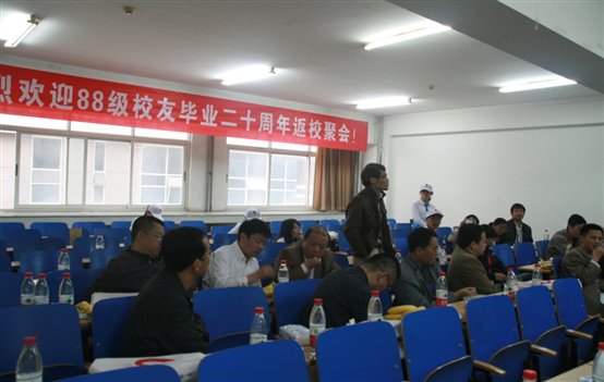 二十年前他们匆匆告别,奔赴祖国各地建功立业。二十年后他们再聚北科,共同庆祝建校60周年。2012年4月21日上午9点,土木环境楼201洋溢着喜庆的气氛。矿机88级员工共聚一堂。此次返校员工来自五湖四海,虽然天公不作美,大雨过后天气有些冷,但丝毫不影响大家相聚的热情。