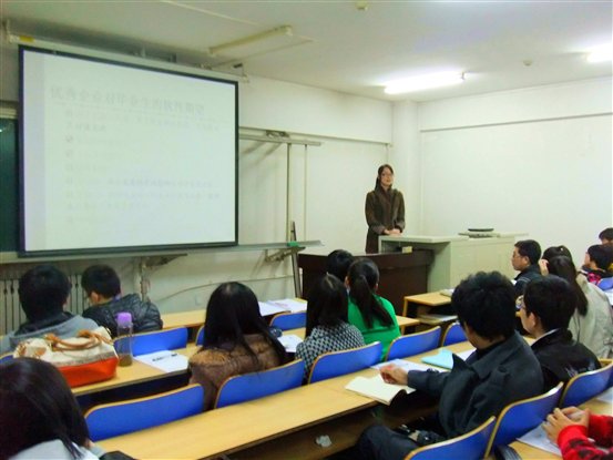 会议伊始,李颖老师发出了一系列的疑问,这些问题将同学们引入到对求职面试等一系列问题的思考中,李颖老师深入浅出的分析了老员工身上的优缺点,对于企业的利与弊,当代老员工应当充满自信与激情的面对求职与工作,但自身还存在许多缺点需要及时克服,许多优秀企业对毕业生的一些硬件要求及软件期望我们还是应该努力去做到。