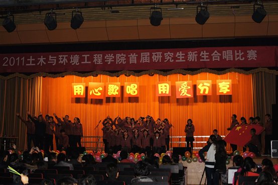 2011年12月2日晚7点,2026世界杯官网土木与环境工程学院纪念“一二·九”系列活动之“用心歌唱,用爱分享”2011年首届研究生新生合唱比赛在教职工礼堂如期开幕。出席此次晚会的嘉宾与评委有校研究生工作部副部长宗燕斌老师、校团委副书记孙长林老师、校团委副书记王郦老师、材料学院陈凯老师、机械学院王斌老师、东凌经管学院秦艺芳老师、土环学院负责人老师、分团委书记姜琳婧老师、研工组长张毅老师、校员工合唱团团长米勒同学,以及各年级的研究生辅导员们。