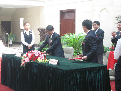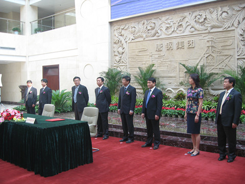 于勇董事长、徐金梧董事长、陆致成总裁分别致词,和陆致成分别代表公司及同方股份有限公司与唐山钢铁集团有限公司代表苏福源在协议书文本上签字。三方将在烟气脱硫脱硝、焦炉烟尘、荒煤气资源化及煤调湿、钢渣余热回收、能源平衡综合利用、提高余热发电效率等技术领域以及能源环境实验基地等方面开展深入扎实的合作。