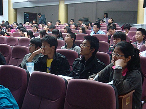 党课开始之前,同学们就已经陆续就坐,报告厅内秩序井然,同学们都在期待着这一次的党课。七点整,刘海生老师在同学们的掌声之中开始了这一次精彩的讲座。刘老师现以长征为例,并结合自己教员工活中的一些案例和自己多年来对党和党的教学工作中的一些感悟,对“坚定共产主义理想信念”这一主题进行了深入浅出的演讲。同学们时而鼓掌,时而沉思。在这次党课的最后,刘老师特别的留出了一定的时间,与同学们交流互动,耐心的讲解了同学们关于“理想信念”的疑惑,并留下了自己的联系方式,以便课后能与同学们继续交流。
