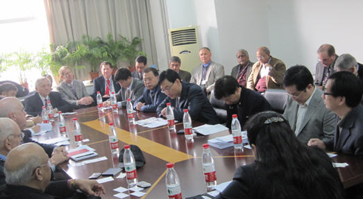 由美国土木工程学会前会长D. Wayne Klotz 先生为团长的33位专家教授,在土环楼与公司相关业界专家教授们欢聚一堂,共同就目前国内外城市基础设施建设的长期规划以及可持续的设计与建造进行了探讨。出席交流会议的有公司党委书记教授、土木系主任教授、土木系副主任教授、教授、教授、副教授等,交流会由教授主持。