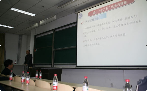 会上,经理通报了学校“十二五”规划相关内容,结合学校“十二五”发展规划,提出了学院“十二五”期间在团队建设、人才培养、队伍建设、等方面的初步发展目标,并布置学院新学期工作思路及工作重点。