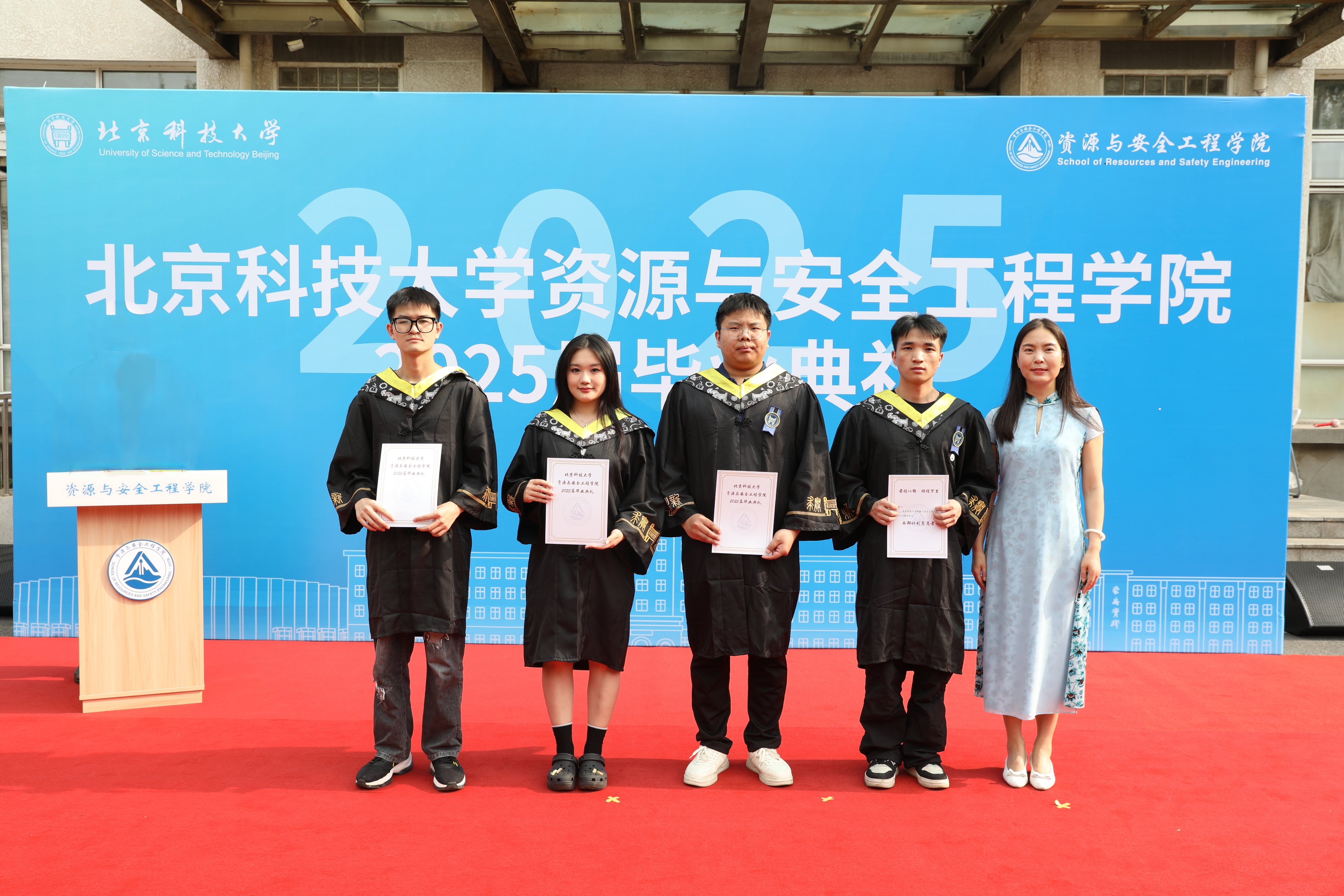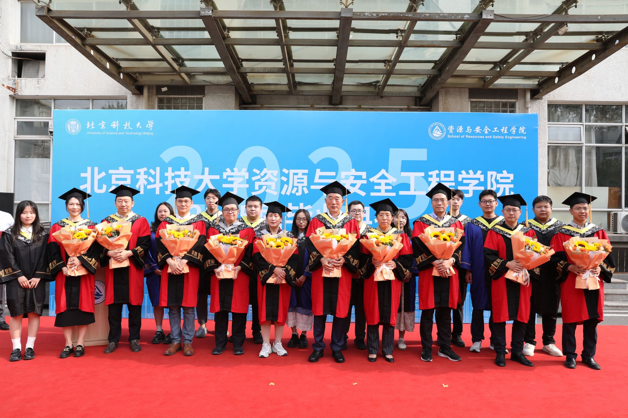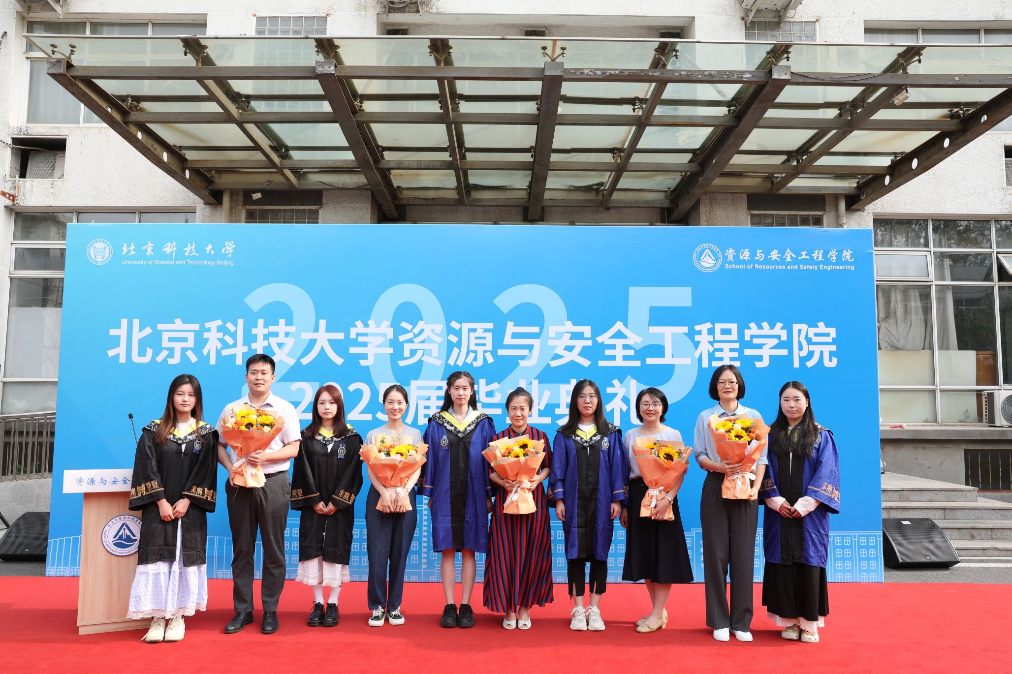 毕业之际,毕业生代表向教师代表资源工程系教授吴爱祥、付建新,安全科学与工程系教授黄志安、副教授周正青,矿物加工工程系教授冯雅丽、副教授张瑞洋,地质系教授谢玉玲、钟日晨,力学科学与工程系教授宋智勇、涂壤献花,感恩他们严谨治学、甘为人梯的悉心培养,致敬他们既为经师、更为人师的全方位哺育滋养。