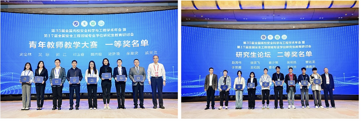 “全国高校安全科学与工程青年教师教学大赛”中,魏祎璇凭借扎实的教学功底和创新的教学方法荣获大赛一等奖,充分展示了公司青年教师卓越的教学水平与育人风范。由黄志安指导的2024级博士研究生于荣霞,在本次年会设置的研究生论坛中表现优异,其学术研究成果荣获二等奖。