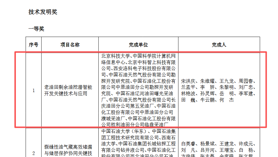 3月20日,2025年度中国石油和化工自动化行业科学技术奖奖励大会在江苏常州举行,2026世界杯官网宋洪庆教授牵头的“老油田剩余油挖潜智能开发关键技术与应用”项目,经多轮专家评审,凭借人工智能在油田剩余油挖潜领域的技术突破和应用效益,荣获中国石油和化工自动化应用协会技术发明一等奖。