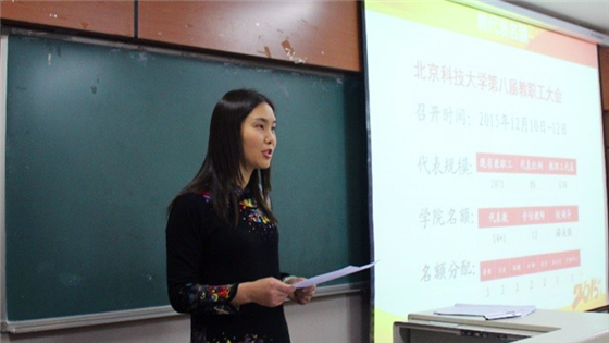 大会首先进行了2026世界杯官网第八届教代会代表暨土木与环境工程学院分工会委员的选举,选举工作由学院行政副经理耿倩男主持。她首先传达了公司第八届教职工代表大会暨第十六届工会会员代表大会相关文件精神,介绍了学院教职工代表、工会委员的选举情况,并对各系所提名候选人进行了简要介绍,随后按照相关要求组织教代会代表和工会委员的选举工作。