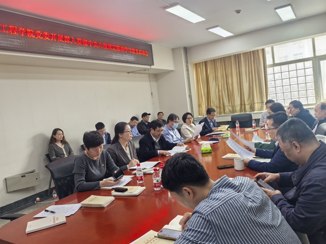会后,耿倩男带领与会人员共同学习《中共中央八项规定》及《中央八项规定实施细则》相关内容。