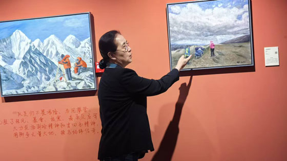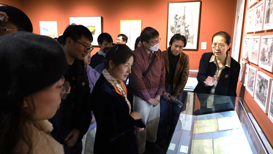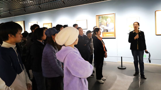 地质系师生与高平理事长在“地质之光”绘画展展厅合影