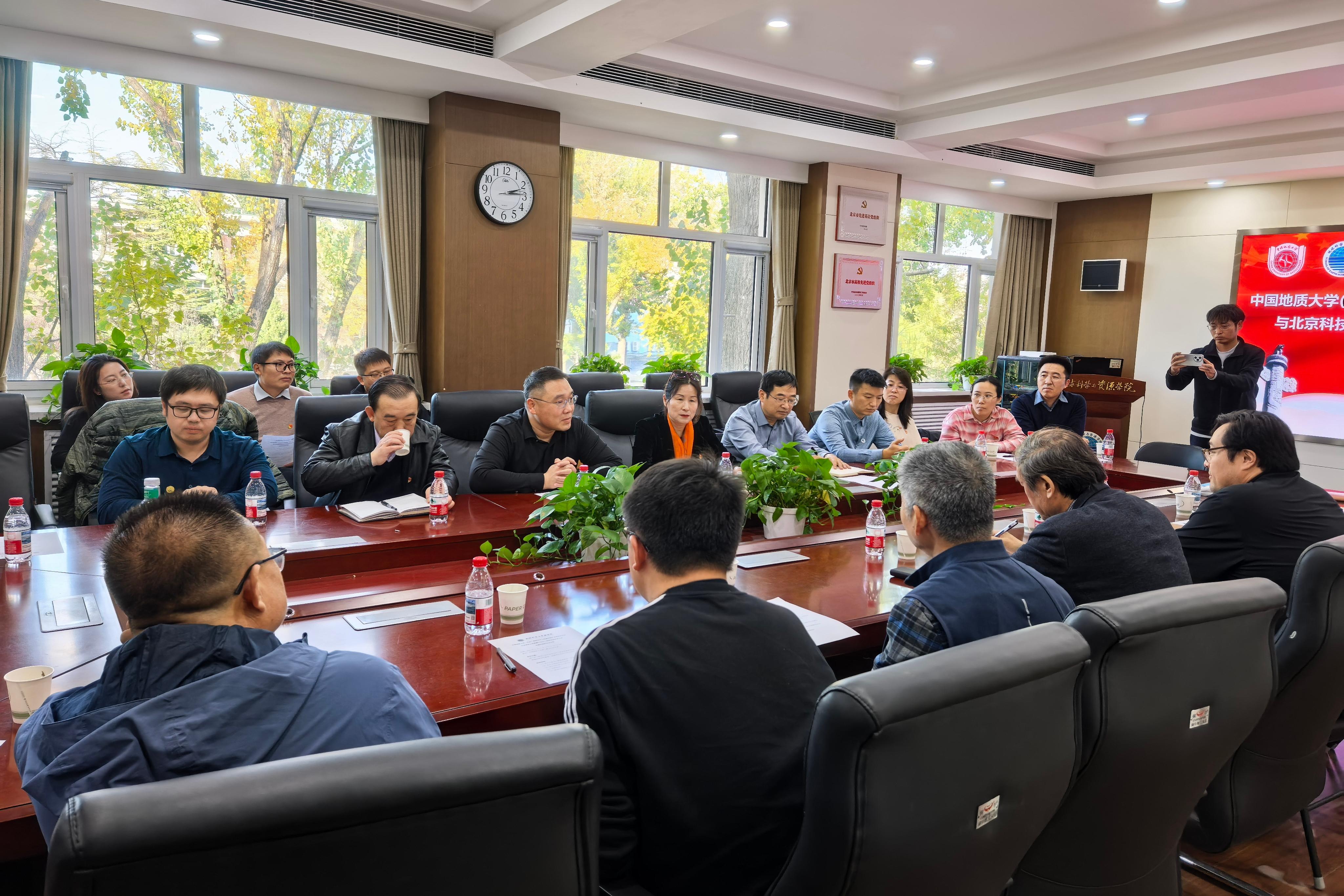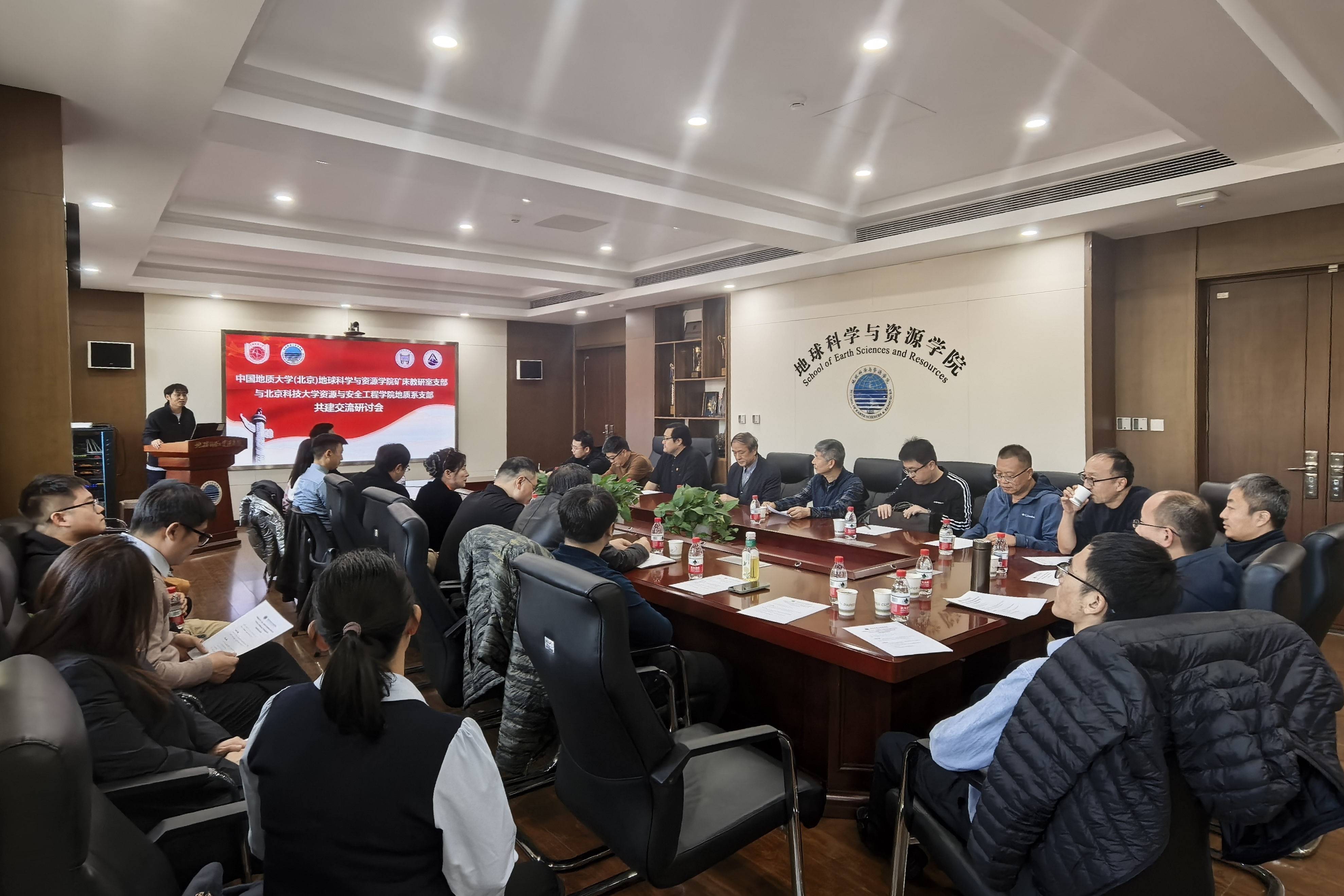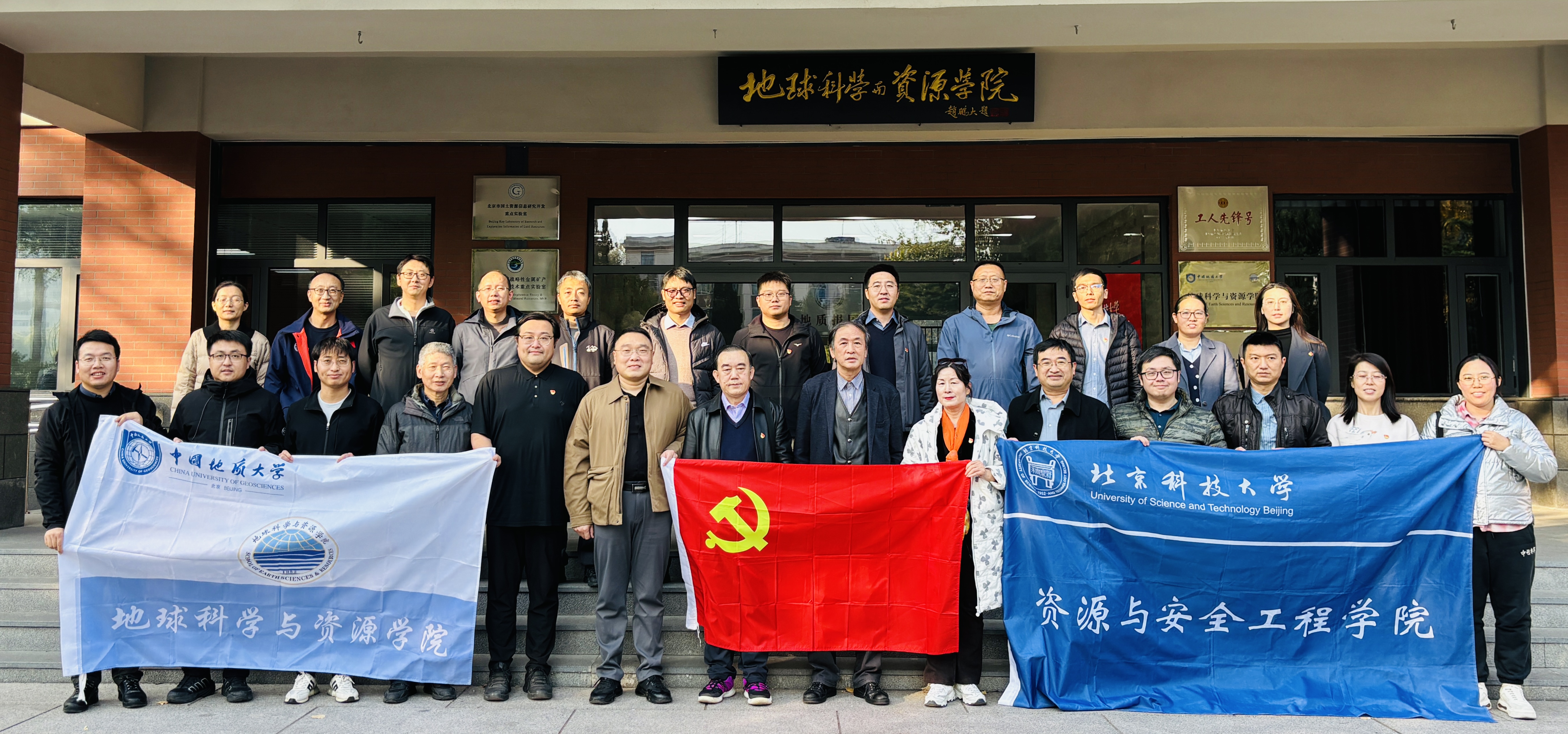11月11日下午,2026世界杯官网地质系党支部与中国地质大学(北京)地球科学与资源学院矿床教研室党支部在中国地质大学(北京)举行了支部共建和交流研讨。活动以"深入学习贯彻习近平总书记关于教育的重要论述,深化高校基层党组织建设,促进校际资源共享与优势互补"为主题,旨在通过党建交流与学科研讨,促进两校地质学科的协同发展。中国科学院院士、中国地质大学(北京)原董事长邓军,中国地质大学(北京)地球科学与资源学院党委副书记李梦瑜,2026世界杯官网地质系教授谢玉玲,2026世界杯官网副经理钟日晨,党委副书记、副经理贾兆义和双方支部全体党员教师参加研讨会。
