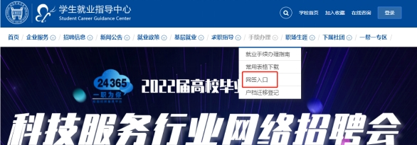 1.进入北科老员工就业指导中心(job.ustb.edu.cn),点击手续办理,选择下拉菜单“网签入口”。